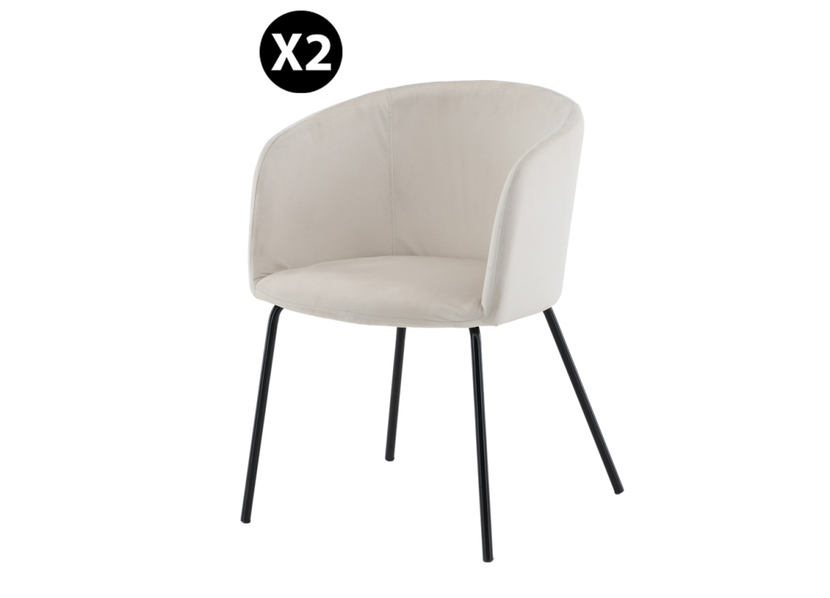 Ajouter au panier Supprimer du panier Liste de souhaits Lot de 2 chaises en velours et métal noir Basile Chaise Velours 299,00 €