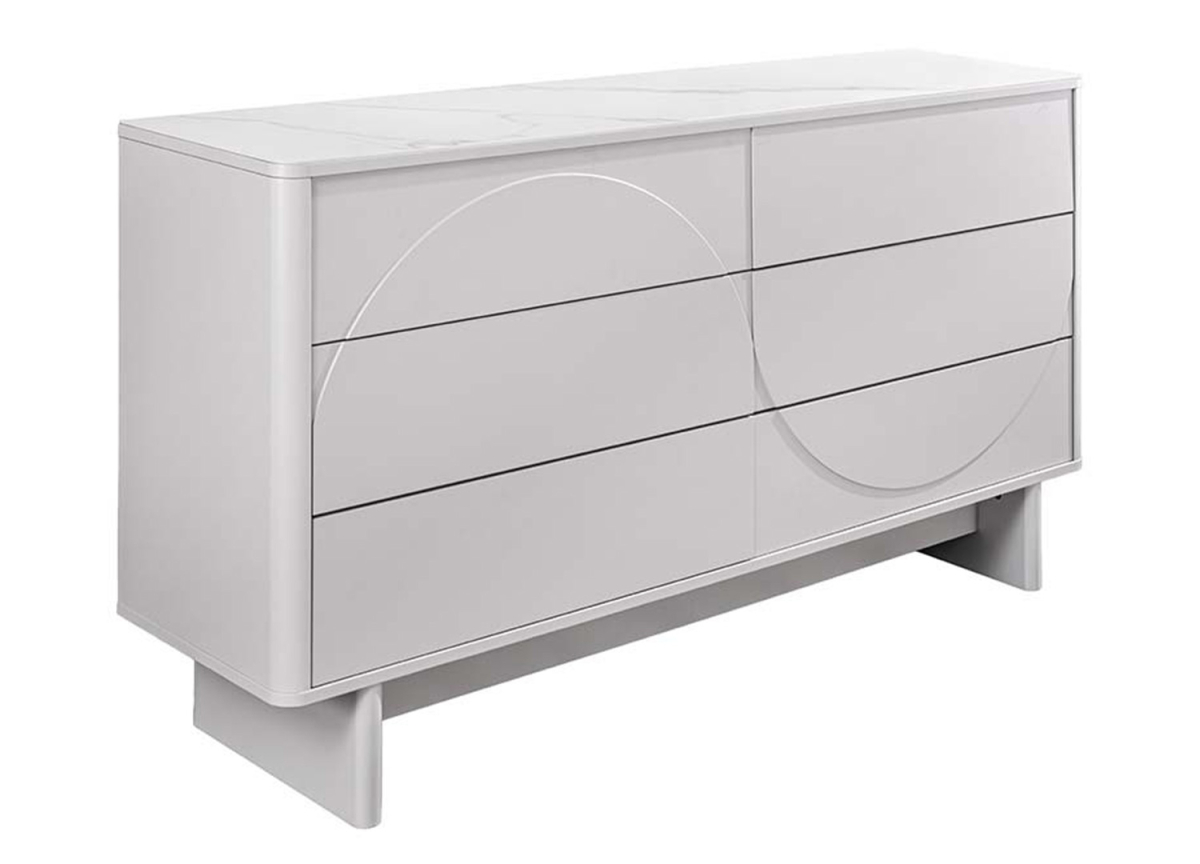 Le fil conducteur ? Un relief semi-circulaire emblématique qui rend hommage au style Art déco. Chaque meuble — du meuble TV au buffet, en passant par le buffet haut et la commode — devient une pièce maîtresse grâce à ses lignes fluides et ses finitions arrondies ultra-tendances.