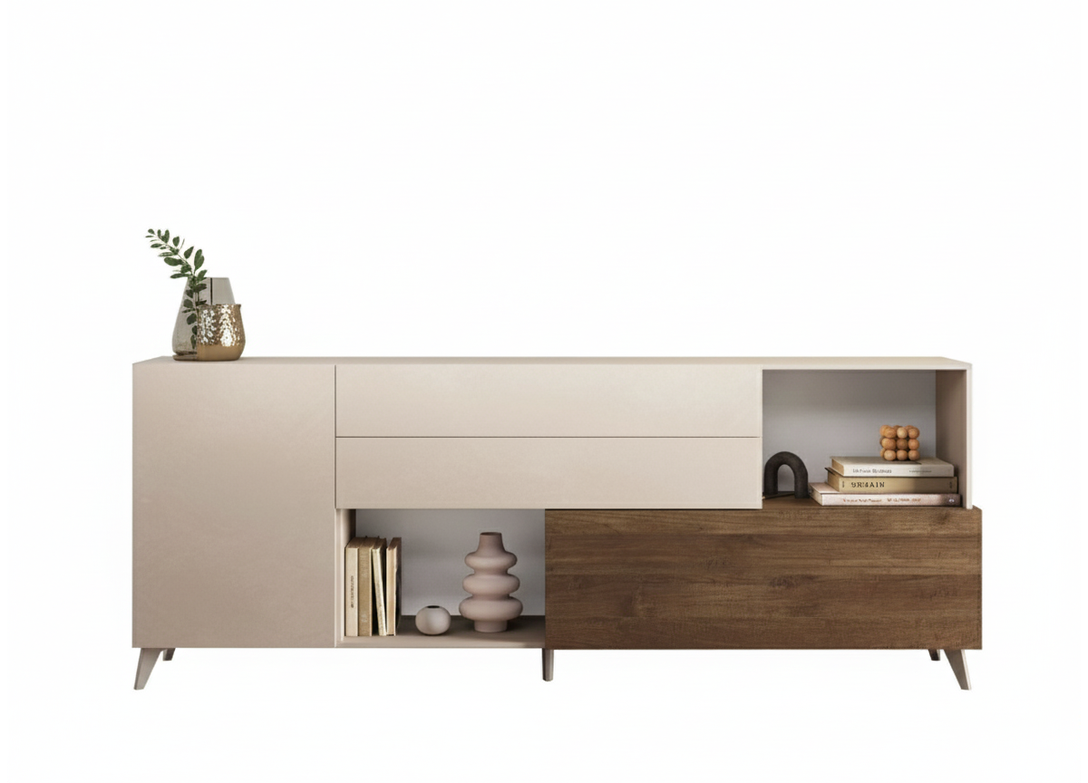Nouveau Ajouter au panier Supprimer du panier Liste de souhaits Buffet de 210 cm, bois et cachemire Maelis Buffet Design 419,00 €