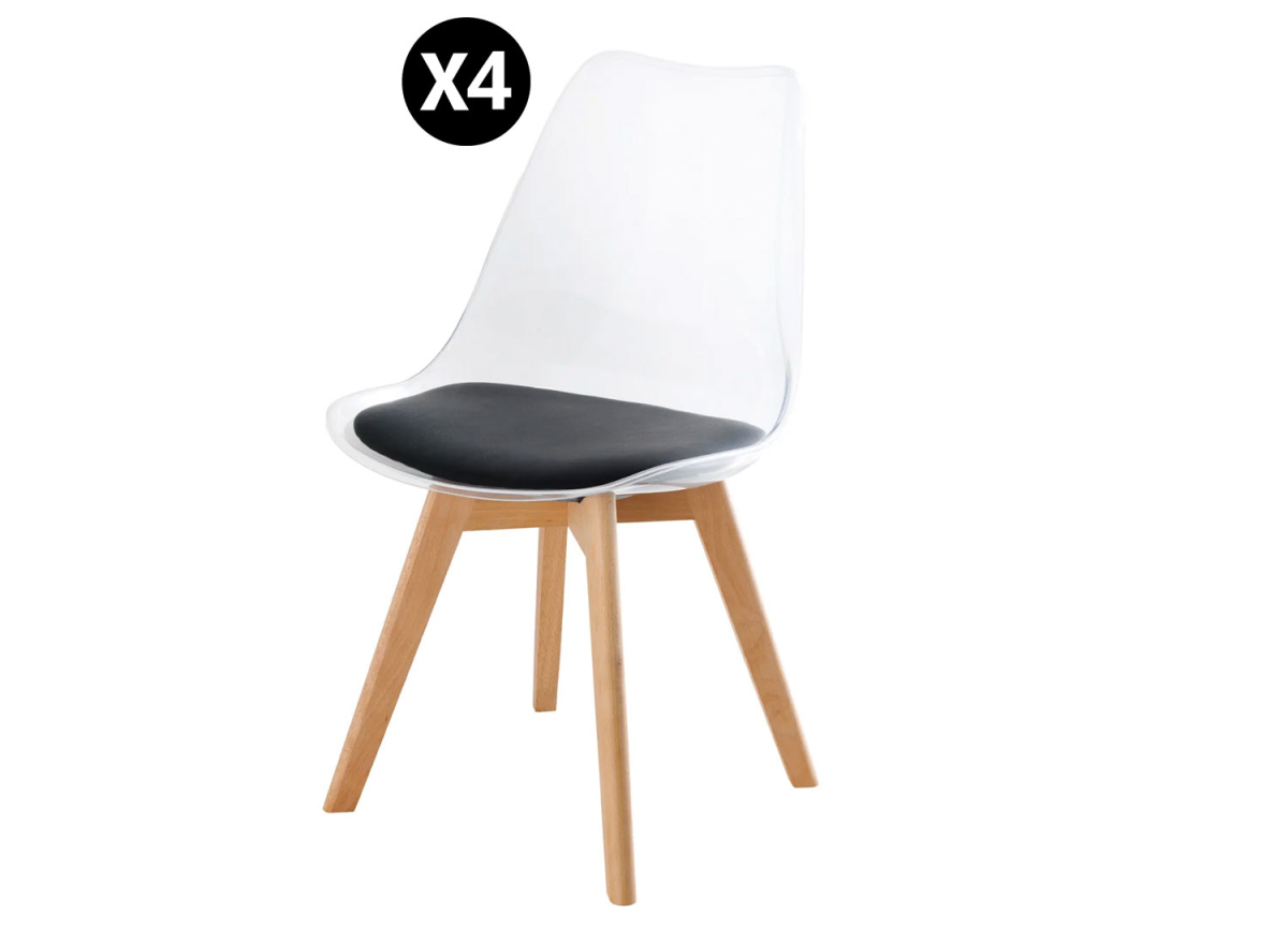 -5% Ajouter au panier Supprimer du panier Liste de souhaits Chaise transparente assise simili noir / Pieds bois de hêtre Krystale Chaises 219,00 € -5% 208,05 €