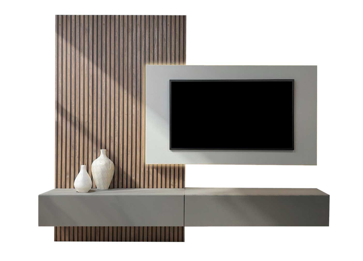 Les meubles TV suspendus éliminent la poussière sous le meuble et libèrent de l'espace au sol, créant une sensation d'ouverture dans la pièce. Disponible en différentes formes et de couleurs, il dispose généralement de cubes ou de colonnes murales.