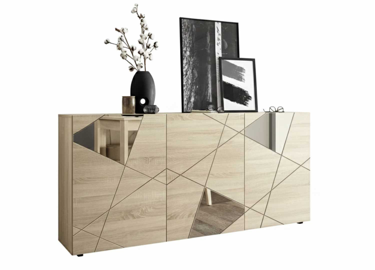 Ajouter au panier Supprimer du panier Liste de souhaits Buffet 3 portes sérigraphié chêne sonoma avec miroir Reflet Buffet Design 429,00 €
