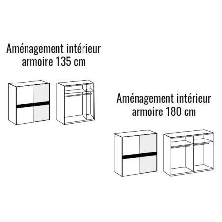 Gagnez en place grâce à cette armoire disposant de portes coulissantes. Une armoire penderie moderne et design par sa déco en façade, portes gris béton et déco en verre blanc dont une avec miroir. Derrière ses portes coulissantes, deux grandes penderies et deux grands compartiments de rangement selon le modèle choisi. Une armoire moderne pour votre chambre représentative des acteurs qui l'occupe.