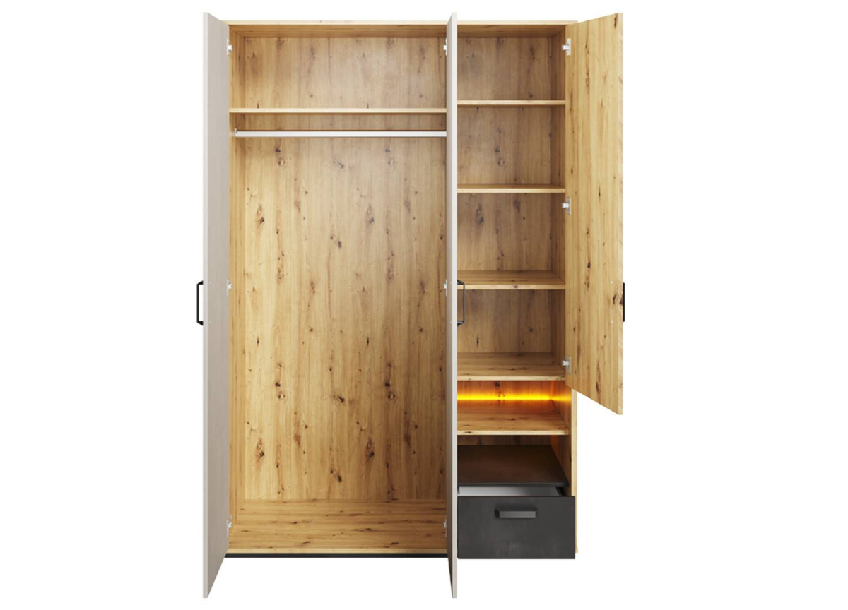 - Imitation chêne artisan, gris graphite, gris clair et noir