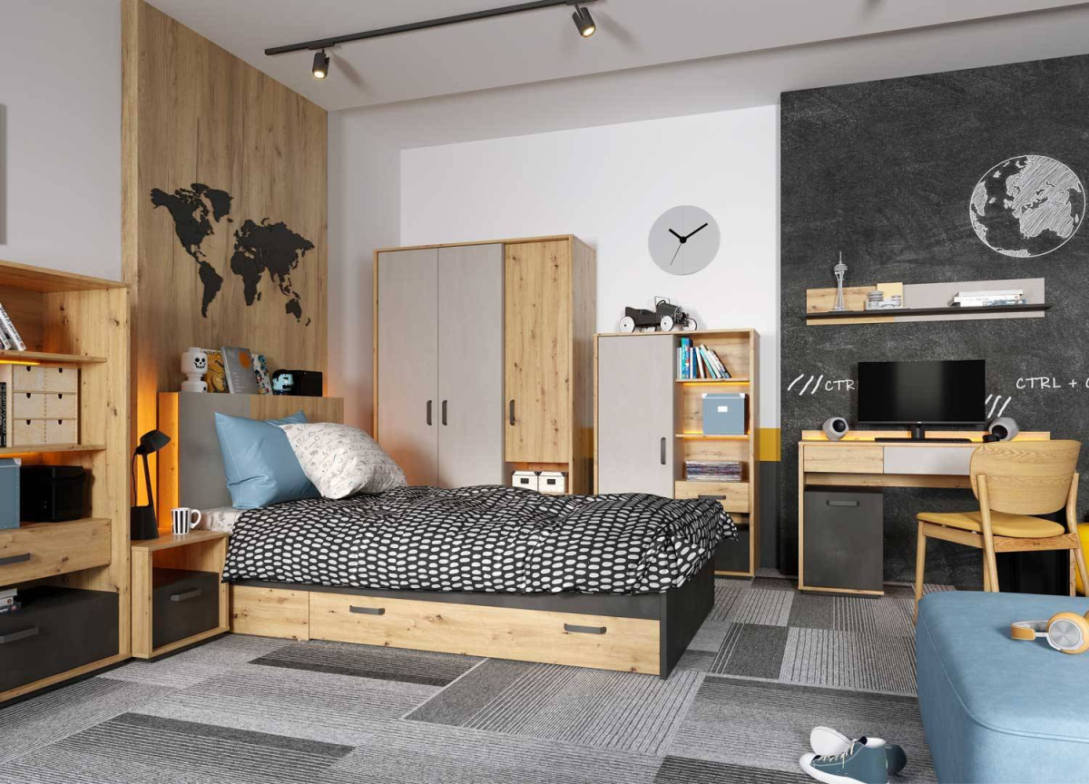 Vous pouvez compléter cette colonne de chambre pour ado avec le lit en 90x200 ou 120x200 cm et la commode de la même collection pour une chambre bien agencée.