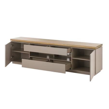 Vous pourrez accorder ce meuble TV gris chaud et acacia avec une de nos tables basses et l'accorder avec un buffet ou une commode de la même collection qui vous assureront un intérieur moderne.
