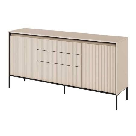 Le Buffet de 166 cm tendance avec ses façades striées qui ajoutent une touche raffinée à tout espace de vie. Ses deux portes, cachent un espace de rangement généreux, idéal pour organiser vaisselle, linge de table ou autres objets essentiels. Les trois tiroirs offrent un rangement supplémentaire tout en accentuant le design épuré du meuble. La teinte beige sable confère au buffet une allure chaleureuse et intemporelle, s'harmonisant facilement avec divers styles d'intérieur.