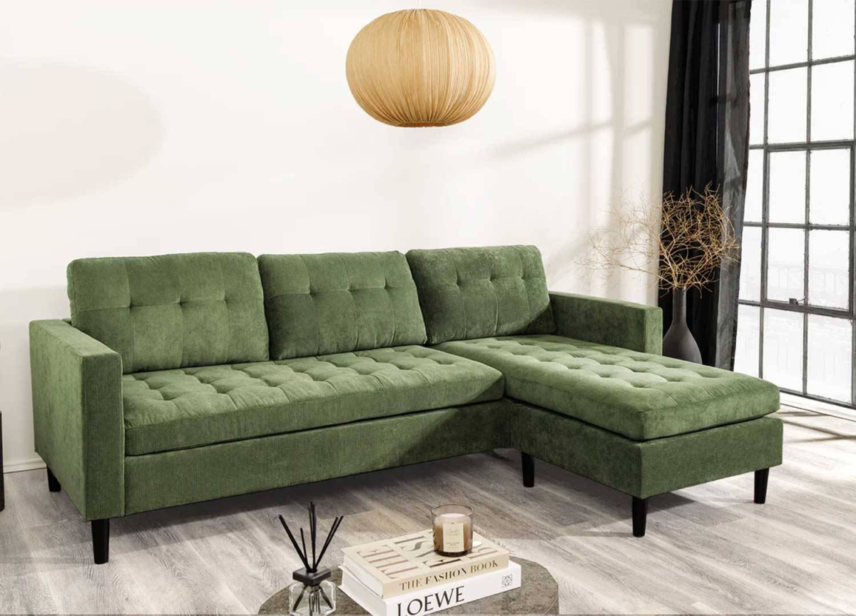 - Canapé d'angle en velours matelassé vert émeraude 100% polyester