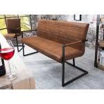 Une Banquette de Table marron, confortable avec accoudoir, assise et dossier rembourrés et recouverts de microfibre marron vintage, pieds en métal brossé noir. Choisir une banquette de table pour une cuisine ou une salle à manger pour savourer d'agréables dîners conviviaux dans le plus grand confort.