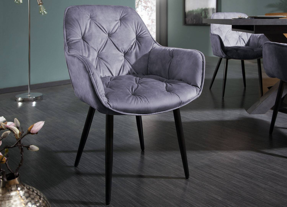 Ces chaises design en velours s'intègreront parfaitement avec une de nos tables de salle à manger ronde.