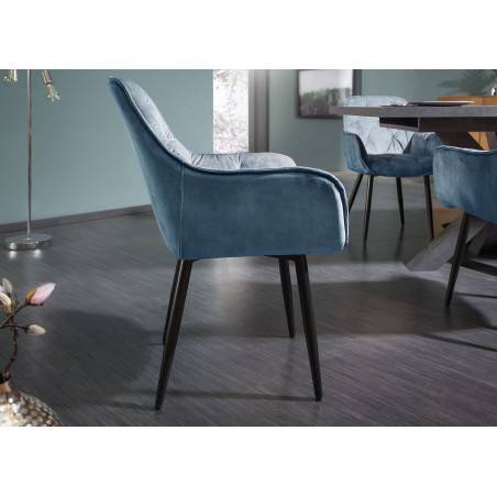 Évoquez le luxe et l'élégance dans votre espace de vie avec ce Lot de deux chaises en velours pétrole. Le velours lisse et somptueux offre une assise confortable et opulente, tandis que les accoudoirs ajoutent une touche de confort et de sophistication. Les pieds en métal noir poudré apportent une stabilité solide tout en créant un contraste visuel frappant avec le velours pétrole, créant ainsi une esthétique moderne et audacieuse. Ces chaises incarnent le mariage parfait entre le design contemporain et le confort suprême, ajoutant une touche de glamour à votre salle à manger ou à votre espace de vie.