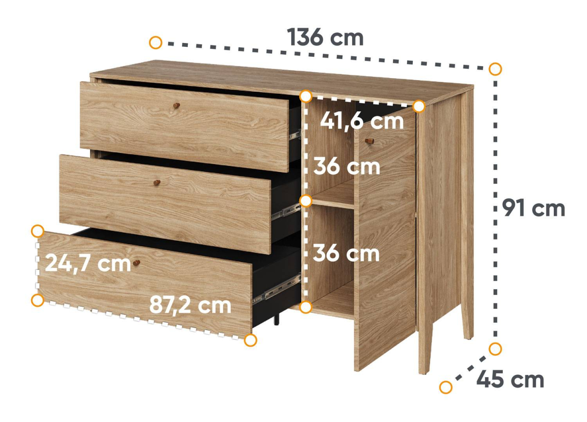 - 3 Grands tiroirs montés sur coulisses métalliques invisibles