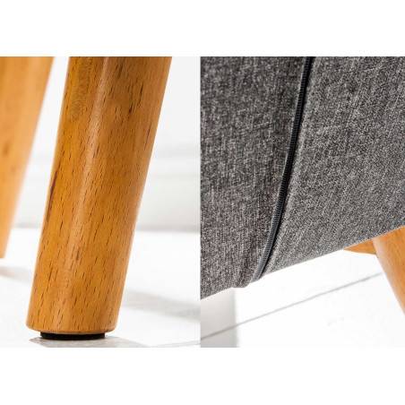 Ce Fauteuil de style Scandinave présente un revêtement tapissé d'un tissu gris avec des détails matelassés sur le dossier pour un confort moelleux, et il est soutenu par des pieds en bois massif. La livraison est gratuite, ce qui en fait un choix idéal pour agrémenter votre salon ou votre chambre.