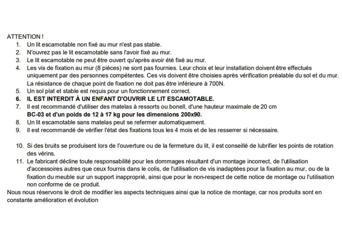 - Pour ouvrir le lit, il suffit d'exercer une pression sur le rabat à l'avant (bouton poussoir) et de tirer doucement pour que le lit s'abaisse