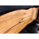 Magnifique Lit double en bois massif avec une tête de lit à rebords irréguliers et éléments métalliques. Ce lit est un excellent choix pour ceux qui recherchent un meuble unique et de caractère.