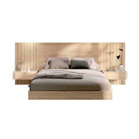 Offrez-vous un cocon de douceur avec notre lit double haut de gamme. La tête de lit imposante, pièce maîtresse de ce lit, apporte une touche d'élégance et de confort, rehaussée de bois noble et crée une ambiance chaleureuse. Les chevets suspendus intégrés, dotés chacun d'un tiroir, ajoutent une note de légèreté et de modernité. Ils vous offrent un espace de rangement pratique pour vos effets personnels. Le cadre de lit à effet surélevé et ses angles arrondis, crée une impression de légèreté et de douceur. Il facilite également le nettoyage et évite les chocs. Design et contemporain, les lignes épurées et les finitions soignées de ce lit s'intègrent harmonieusement dans tous les styles de décoration. Ce lit est fabriqué à la commande avec des matériaux de qualité supérieure. Personnalisez votre lit en choisissant parmi notre large gamme de teintes de bois et de couleurs.