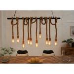 Ce luminaire à corde tressée est équipé d'un bras relié à deux chaines en métal évoquant un caractère de style industriel maritime ou campagnard. Cette suspension se plaira particulièrement au-dessus d'une table de repas en bois. Équipée de dix douilles pour ampoule LED E27, elle délivrera un bel éclairage à votre table de salle à manger ou de cuisine. La hauteur de ce luminaire est réglable.