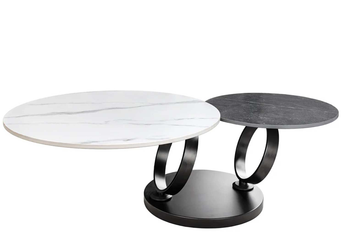 Ajouter au panier Supprimer du panier Liste de souhaits Table basse pivotante aspect marbre blanc/Anthracite Eclipse Table Basse Céramique 599,00 €