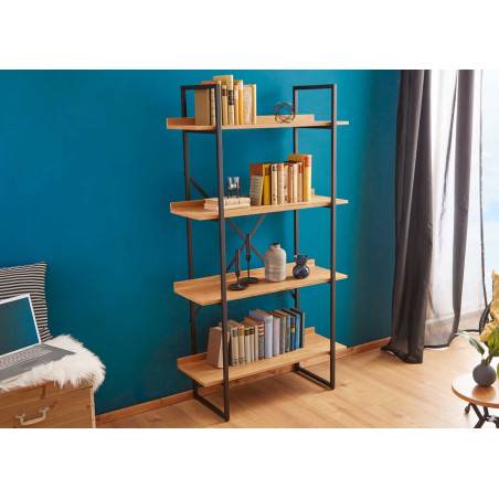 Une Bibliothèque avec 4 étagères en MDF et placage de chêne, dotée d'une structure en métal noir au style industriel. Cette élégante bibliothèque mesure 166 cm de hauteur, alliant la chaleur du chêne au charme robuste du métal noir. Les étagères en MDF avec placage de chêne offrent un espace généreux pour exposer vos livres, objets de décoration ou souvenirs précieux, tandis que la structure en métal noir ajoute une touche moderne et industrielle à votre espace. Cette bibliothèque est à la fois fonctionnelle et esthétique, parfaite pour organiser et mettre en valeur vos trésors littéraires et décoratifs.