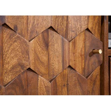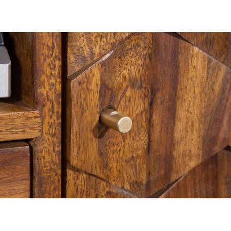 Ce Meuble TV de 140 cm est parfait pour apporter une touche rétro à votre intérieur. Ce meuble se distingue par ses façades originales, minutieusement travaillées à la main pour offrir un design unique et artisanal.