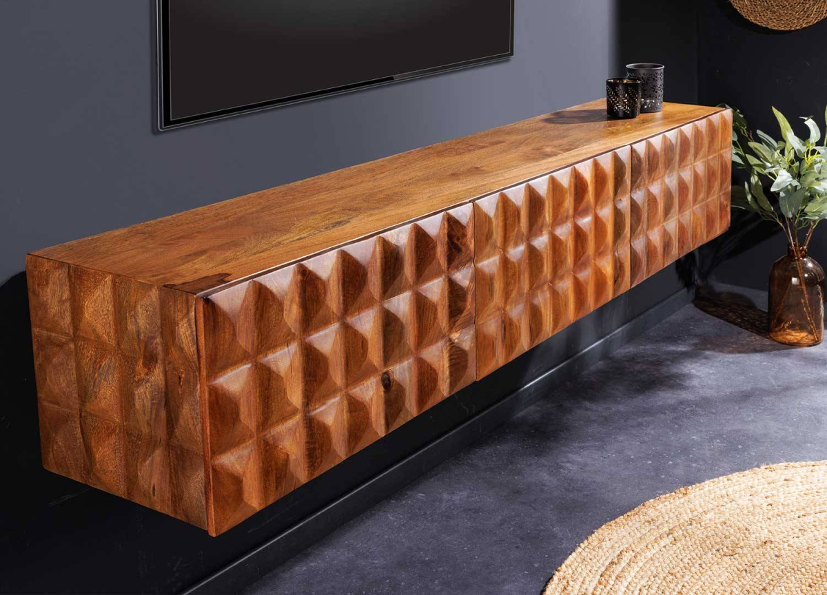 Un Meuble TV fabriqué en chêne chaleureux avec des rangements astucieux apportant non seulement du caractère à l'espace, mais transforment également le coin télévision en une véritable pièce maîtresse du salon.