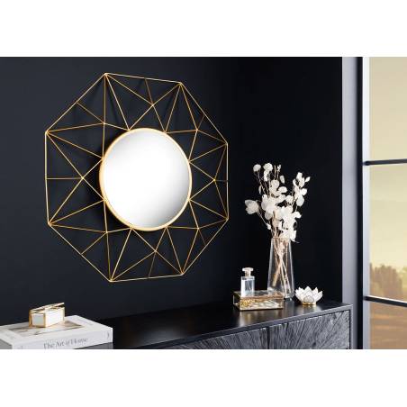 Vous pourrez accorder ce miroir design avec des meubles dorés du même style.