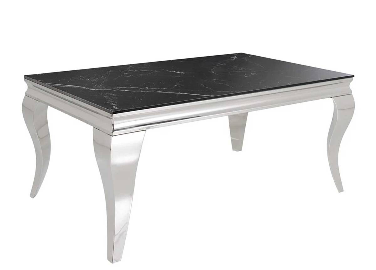 Découvrez le caractère unique de cette Table Basse au design moderne qui associe un plateau en céramique aspect marbre noir associé à des pieds galbés en acier chromé. Cette table basse rectangulaire de 100 × 60 cm apportera une prestance remarquable dans votre salon.