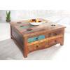Une Table Basse unique en bois massif recyclé issu de vieux bateaux de pêche. On opte pour un salon au style industriel et écolo en achetant cette belle table basse carrée fabriquée à la main en bois usé et peint. Commandez en ligne et bénéficiez de la Livraison Gratuite pour profiter d'un meuble de salon original avec rangement, équipé de 4 tiroirs et d'un plateau relevable.