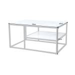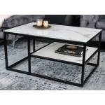 Cette Table Basse Rectangulaire en verre aspect marbre blanc, surmontée d'un plateau inférieur pratique pour vos livres ou objets déco, repose sur un piétement en métal noir. Un design épuré qui invite à la détente et à l'organisation, tout en sublimant votre espace de vie.