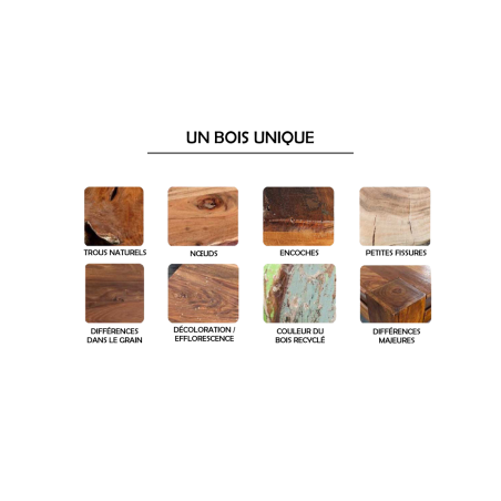 Remarque : puisqu'il s'agit d'un produit naturel, chaque copie est absolument unique. Des irrégularités, des nœuds charismatiques, des fissures ou même des différences dimensionnelles sont possibles et créent de l'originalité qui font le charme d'un meuble en bois massif. Les variations de couleurs, les ecchymoses naturelles sont intentionnelles et ont pour but l'authenticité d'un meuble en bois massif. Aucun de ces éléments ne constitue un motif de plainte.