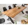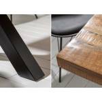 Une table de repas pour réunir sa tribu, charme vintage et en même temps contemporain, l'important d'une table de salle à manger c'est qu'elle soit assez spacieuse pour accueillir famille et amis. Le plateau en bois de manguier est travaillé à la main avec effet latté. La table a été conçue dans un style industriel, rugueux, avec des surfaces sombres et des marques de scie. Le piétement croisé en métal noir accomplit le style industriel.
