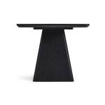 Avec une forme rectangulaire et un pied central, cette table de couleur chêne noir offre de l'espace. Avec une largeur de 180 cm et une profondeur de 90 cm, cette table de salle à manger peut accueillir confortablement de 6 à 8 personnes.